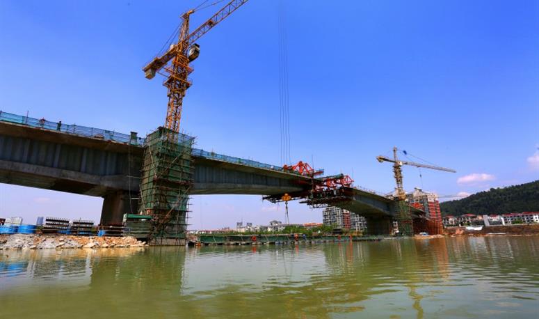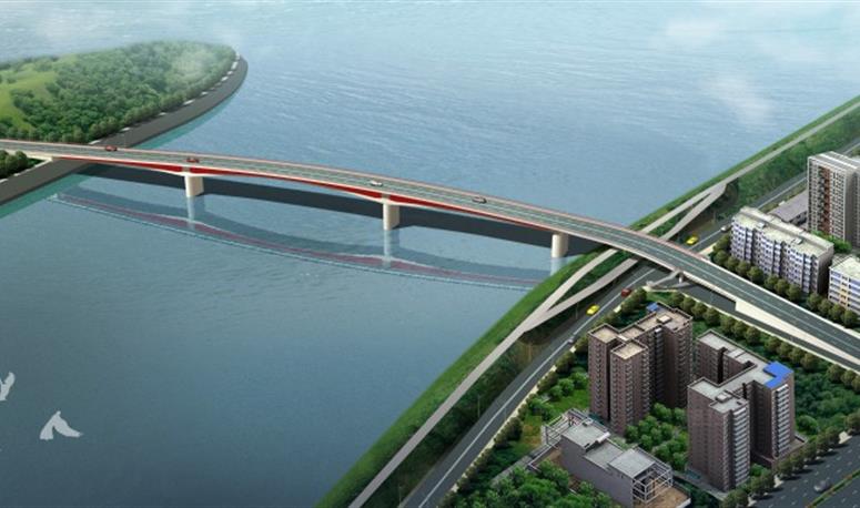 虹云橋連接桃花島和沈家壩片區,為城南新區規劃的配套項目,起于桃花島,上跨涪江、芙蓉路,終點接綿鹽路,橋梁全長497米,其中主橋設計為83米+110米+83米三跨波形鋼腹板連續梁,橋梁寬度18米,設計行車時速20公里。項目建成后將加強城南片區與沈家壩片區的交通聯系,改善桃花島片區的出行條件,緩解涪江三橋的交通壓力。