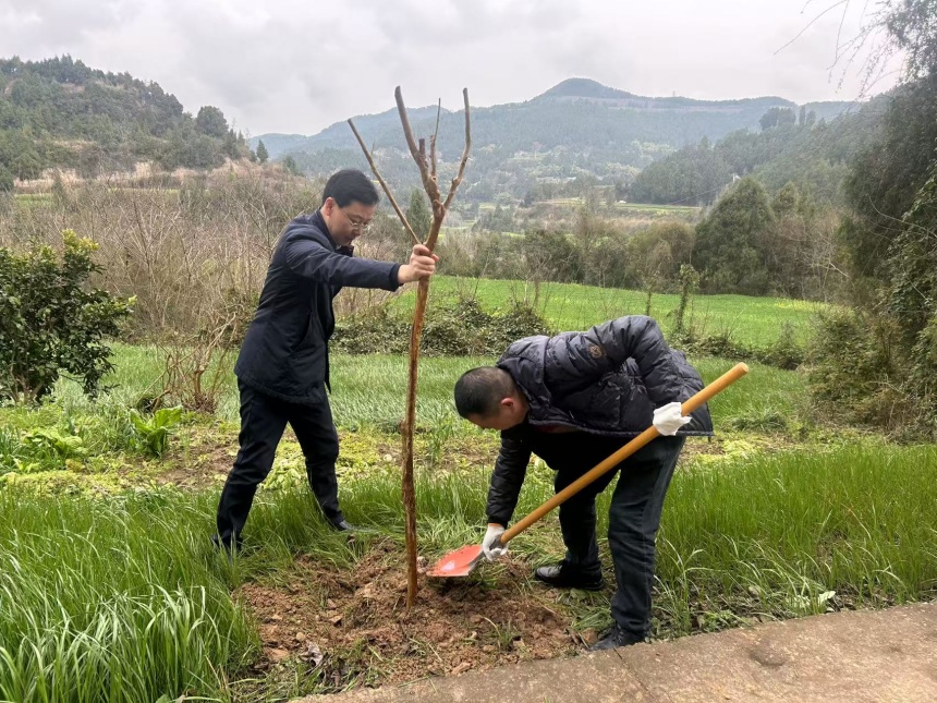 陽春三月,萬物競發。為以實際行動踐行“綠水青山就是金山銀山”生態文明理念,以黨旗紅引領生態綠,近日,重汽綿專公司聯合綿陽市審計局、鹽亭縣彌江村開展“黨建領航添綠,鄉村振興譜新篇”春季義務植樹活動,以“綠色行動”賦能鄉村振興,為美麗鄉村建設再添新綠。